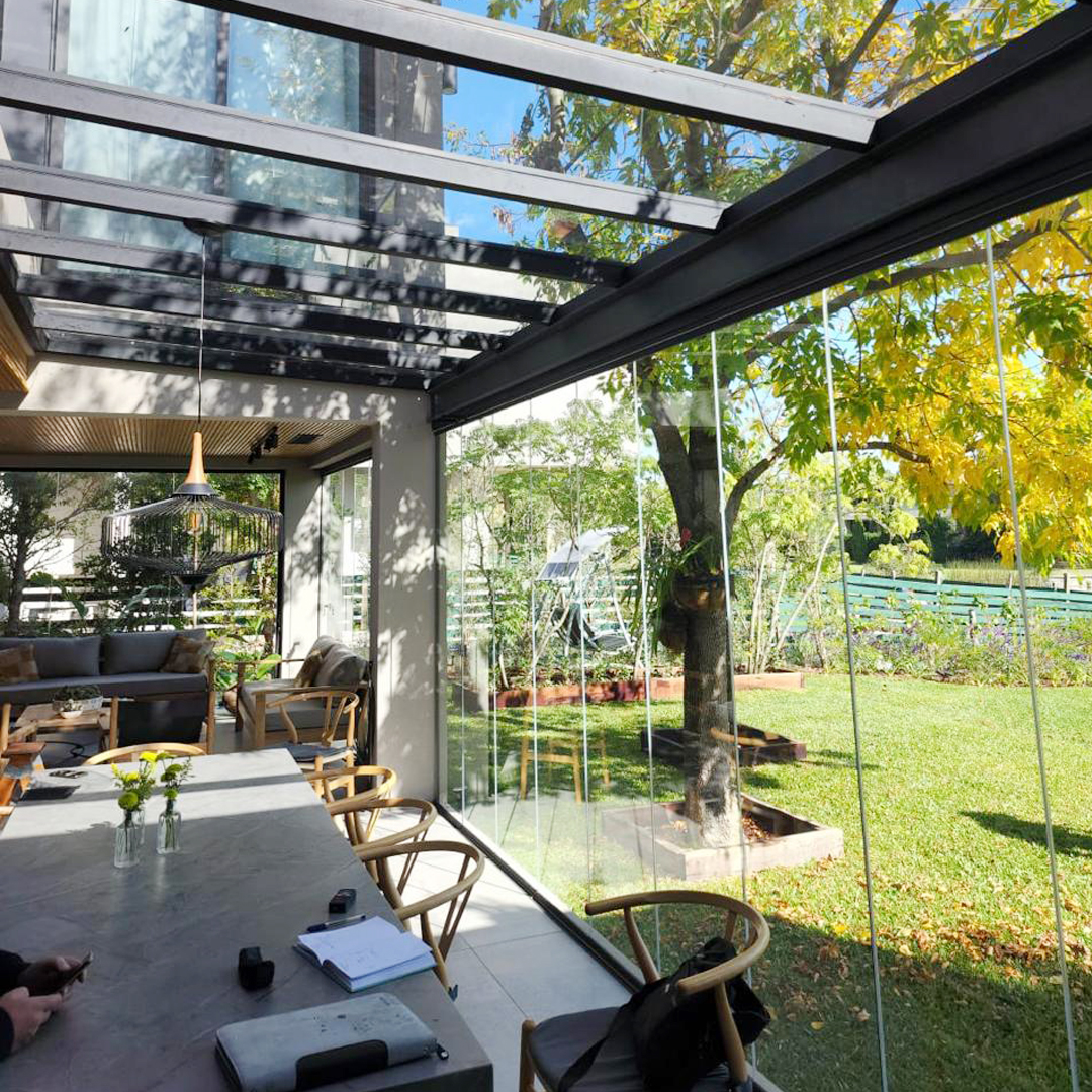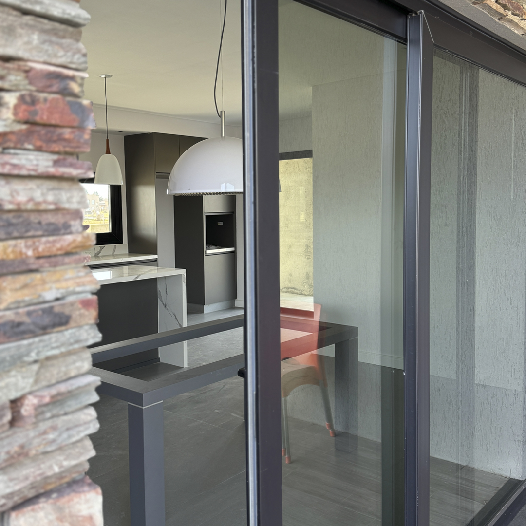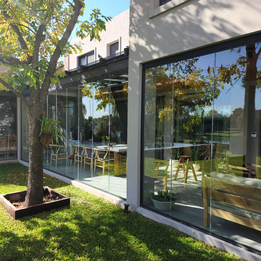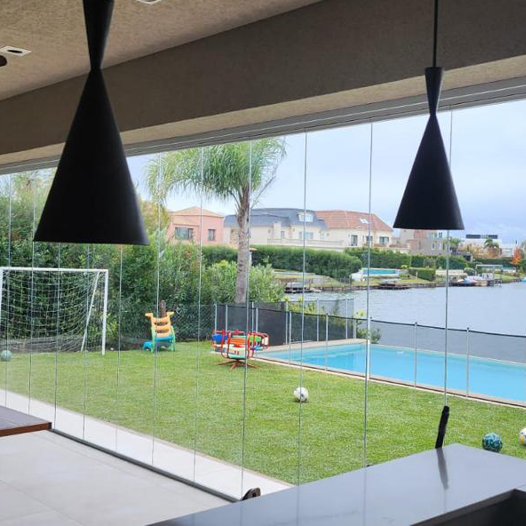 Cerramiento realizado con vidrio laminado de seguridad Security Glass, que ofrece máxima resistencia a impactos y excelente aislación sin perder transparencia. Ideal para aprovechar la luz natural y garantizar espacios seguros para niños y mascotas.
