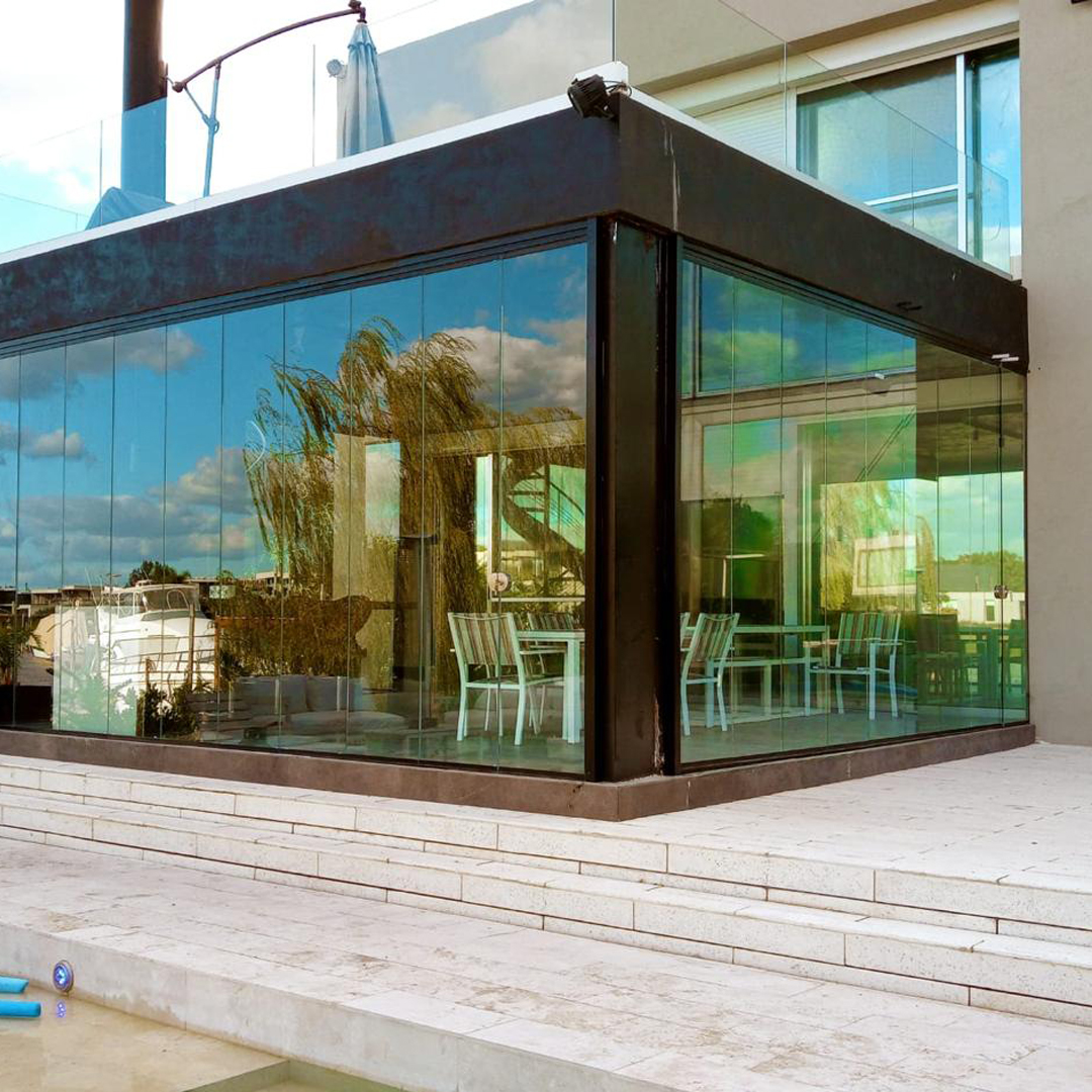 Cerramiento realizado con vidrio laminado de seguridad Security Glass, que ofrece máxima resistencia a impactos y excelente aislación sin perder transparencia. Ideal para aprovechar la luz natural y garantizar espacios seguros para niños y mascotas.